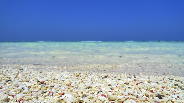 白いサンゴ片に加えて色彩々の貝殻片を多く含み