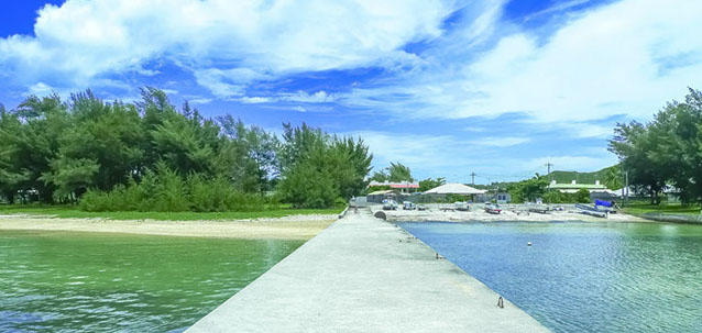 伊是名集落にある遊泳ビーチ「伊是名ビーチ(←左側)」と