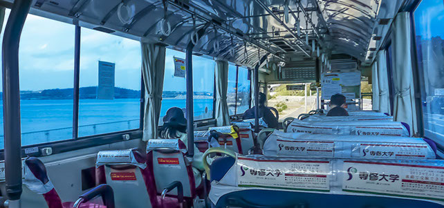 ・ターミナルは名護市中心の繁華街(名護十字路付近)から離れた市街域にあり、構内の食堂を除けば周辺にはバス待ちに適したショップ類はほとんどありません。「バスターミナル」より先の各港や離島内でも、商店・品数・品種は非常に限られ「銀行ATM」も見つけにくいので、旅程に必要なものの購入・旅費の準備は、できるだけ「那覇市内」滞在中に済ませておきましょう。