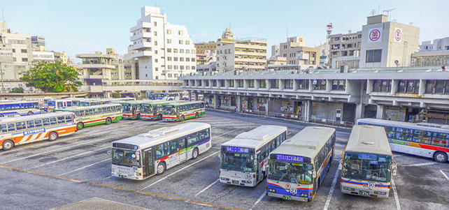 ・「那覇バスターミナル」は、那覇市中心部から沖縄本島各地へ伸びる各バス路線の発着・乗り換え拠点となる大規模なバスターミナル。「那覇空港」からは「タクシー」でも料金を気にせず行ける距離にあり、多少所要時間は増えますが「路線バス」や「モノレール」も利用可能。
