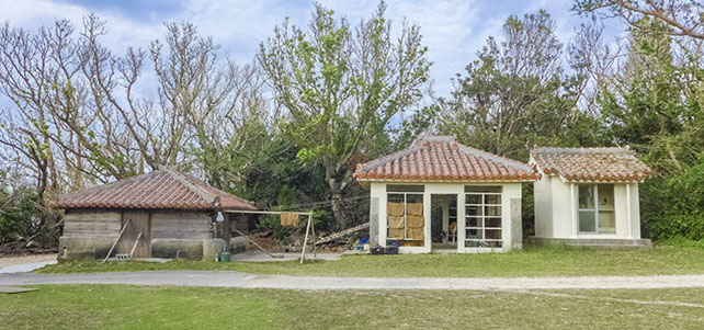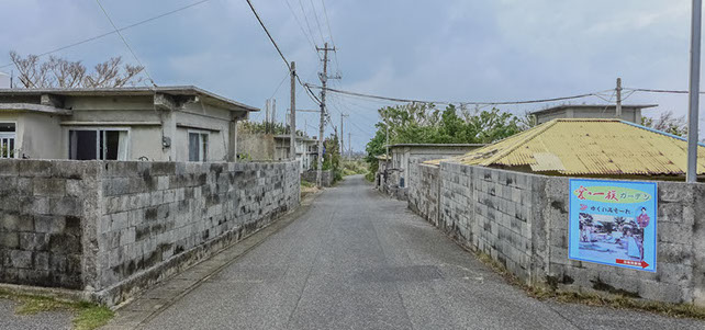 「久高島(くだかじま)」:琉球開闢の聖地として中世王国時代より崇められた「神の島」。島内の街並みと各所の家屋は、その文化・伝統を体現する風格につつまれています。島の東側と西側とで穏やかさと荒々しさを対照的に分ける海岸やそれに沿ってのびる野道も、異界感が漂う独特の風景。