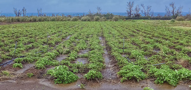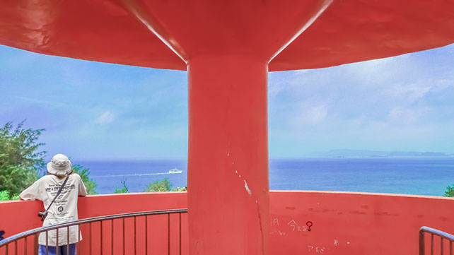「津堅島(つけんじま)」:外周部の多くを遠浅の海にかこまれ、中央部は特産品の「ニンジン」などを栽培する一面の畑作地。小さな島のやさしい風景なのに海原と大地の広さが伝わり、海から見れば平坦なのに街内を歩けば細かく入り組む坂道に迷う。印象を面白く裏切り、不思議な感覚が味わえる島です。