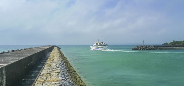 には一般旅客航路はありませんが、観光開発されており本島側(南城市)からツアーボートが通年出ています。