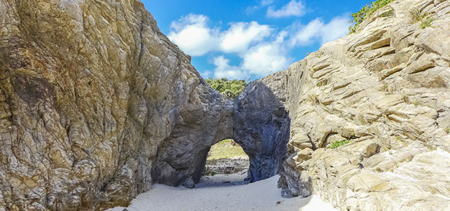 「阿波連」ビーチを 海に向かい右方向に歩くとつきあたる岩塊