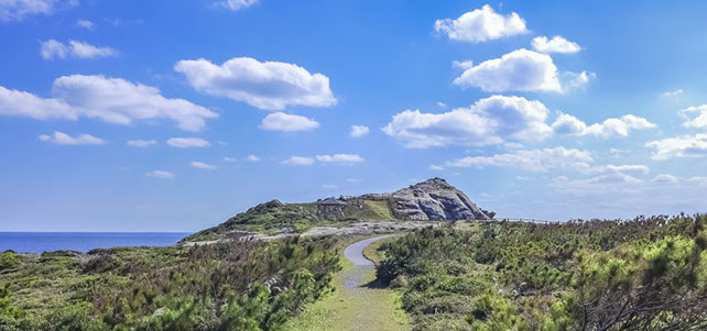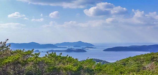・”小さな離島”のイメージを裏切る広さと山深い地形を持ち、島内各所を結ぶ道路・林道の随所で眺望のよい公園や遊歩道・展望台が整備(ただしそれらを徒歩や自転車でまわるのは厳しい)。