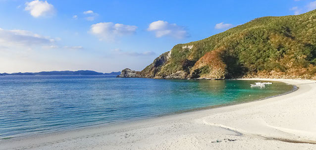 ・島中部の西海岸部には、海水の透明度が高く沖の島々の眺めも美しい海水浴ビーチが2つあり夏はマリンレジャーで大いににぎわいます。冬期(1月~3月頃)には、島は”ホエールウォッチング”のツアーボートの拠点にもなり、それ以外の時期にもダイビングなど全国から訪れる客が絶えません。