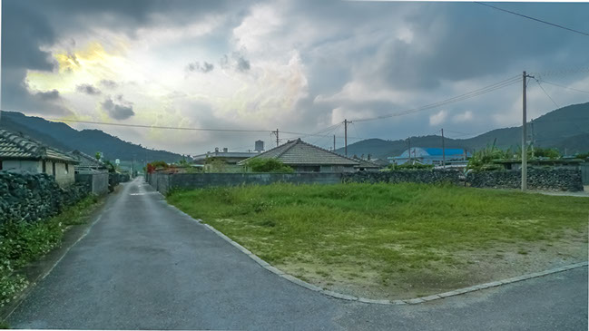:島中央部「村役場」付近から島西部「勢理客」集落まで(下り坂)約2300m・合計3800m