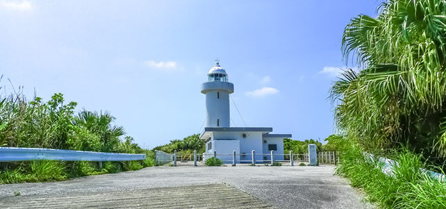 伊平屋島北端・クバ山の標高103mに建つ 「伊平屋島灯台」