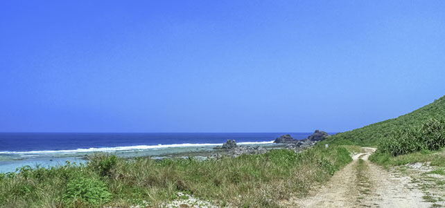 伊平屋島(いへやじま):沖縄県島尻郡(しまじりぐん)・伊平屋村(いへやそん)・那覇市中心部から北北東へ約100km