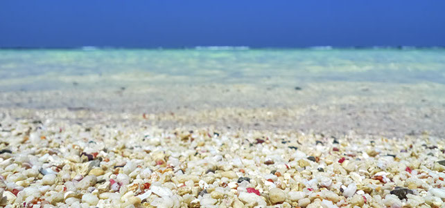 白いサンゴ片に加えて色彩々の貝殻片を多く含み