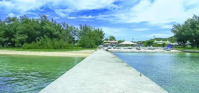 伊是名集落にある遊泳ビーチ「伊是名ビーチ(←左側)」と
