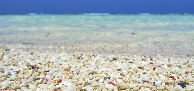 「水納島(みんなじま)」:有人離島としては沖縄でも特に小さな島の一つで、周辺地元では海水浴の島として知られる島。一面の白砂ビーチの美しさに加え、島内各スポットにつながる野道草道の散策も楽しめます。島の中央部に深く入り込む小さな島には不つり合いに大きな入江も、この島だけの風景。