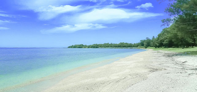 ↑古宇利島とともに橋でつながる「屋我地島」の海岸