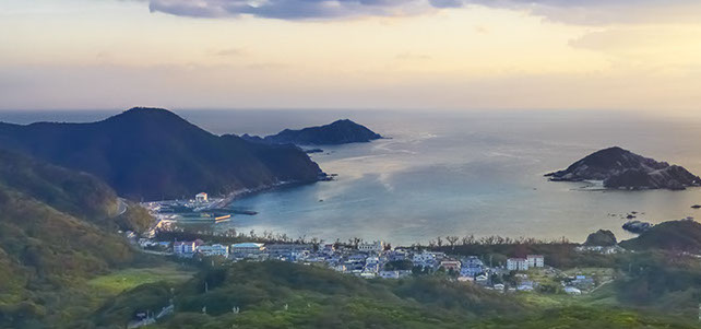 ・”小さな離島”のイメージを裏切る広さと山深い地形を持ち、島内各所を結ぶ道路・林道の随所で眺望のよい公園や遊歩道・展望台が整備(ただしそれらを徒歩や自転車でまわるのは厳しい)。
